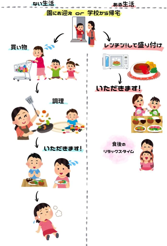 ここで、冷蔵おかずの「ない生活」と「ある生活」を比べてみると、その違いはやはり大きいと感じます。